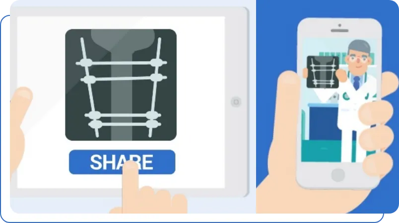 A doctor can share any patient data at any time with any consultant anywhere in the world. Consult may be realtime or reviewed when available. Sharing is as easy as point and click!